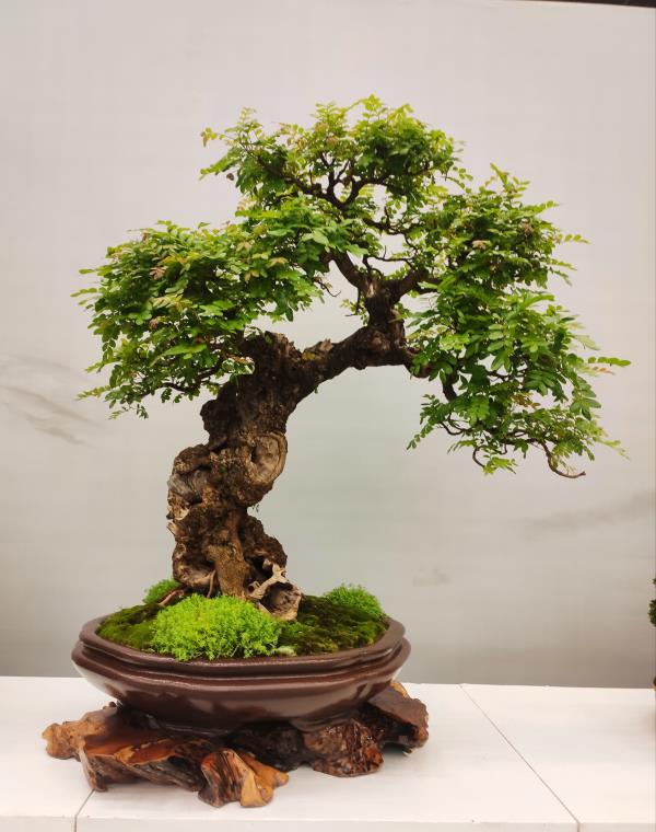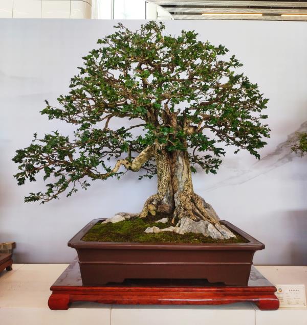 王昌的银奖作品清香木盆景《无畏浮云遮眼界》